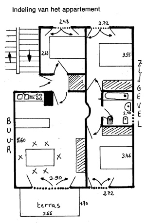 Slaapkamers: 2 grote en 1 kleine slaapkamer telkens met een tweepersoonsbed (6